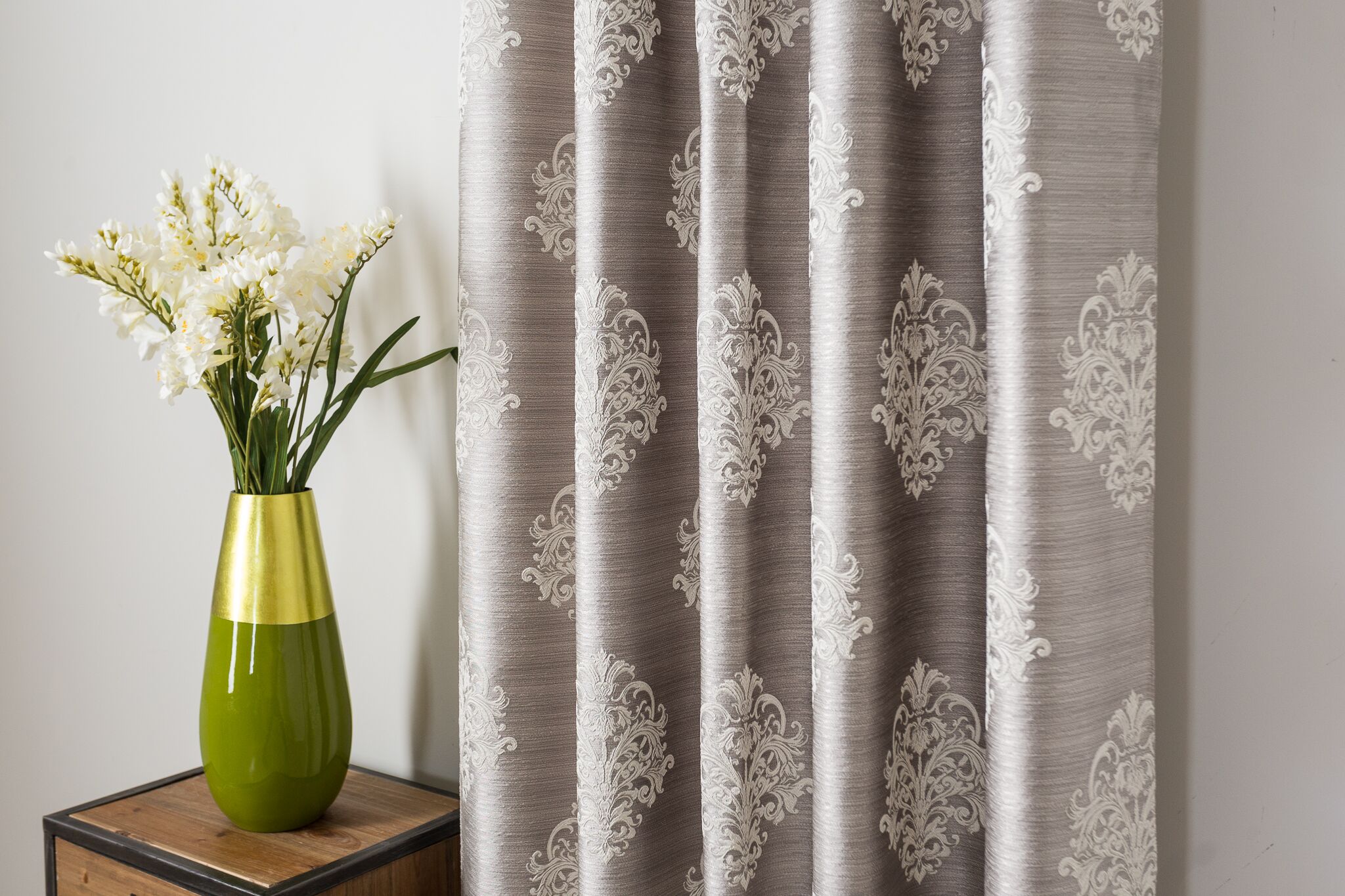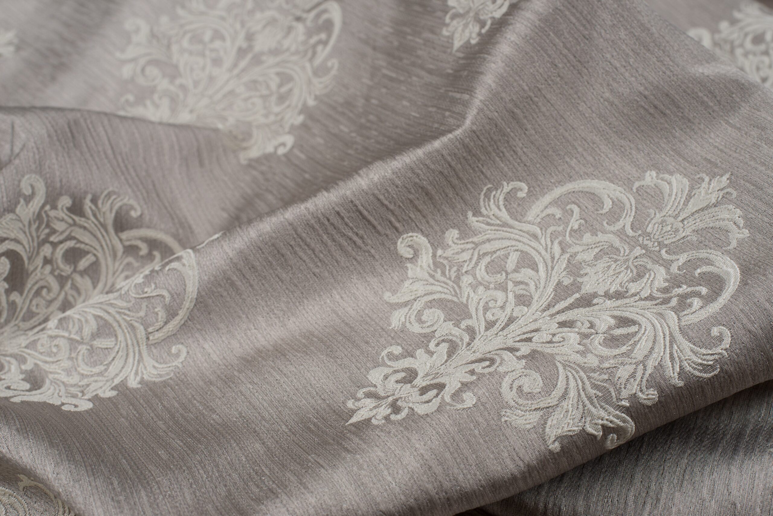 Țesătura materialului este fină și mată, și este disponibilă în 3 nuanțe: gri, maro și albastru.