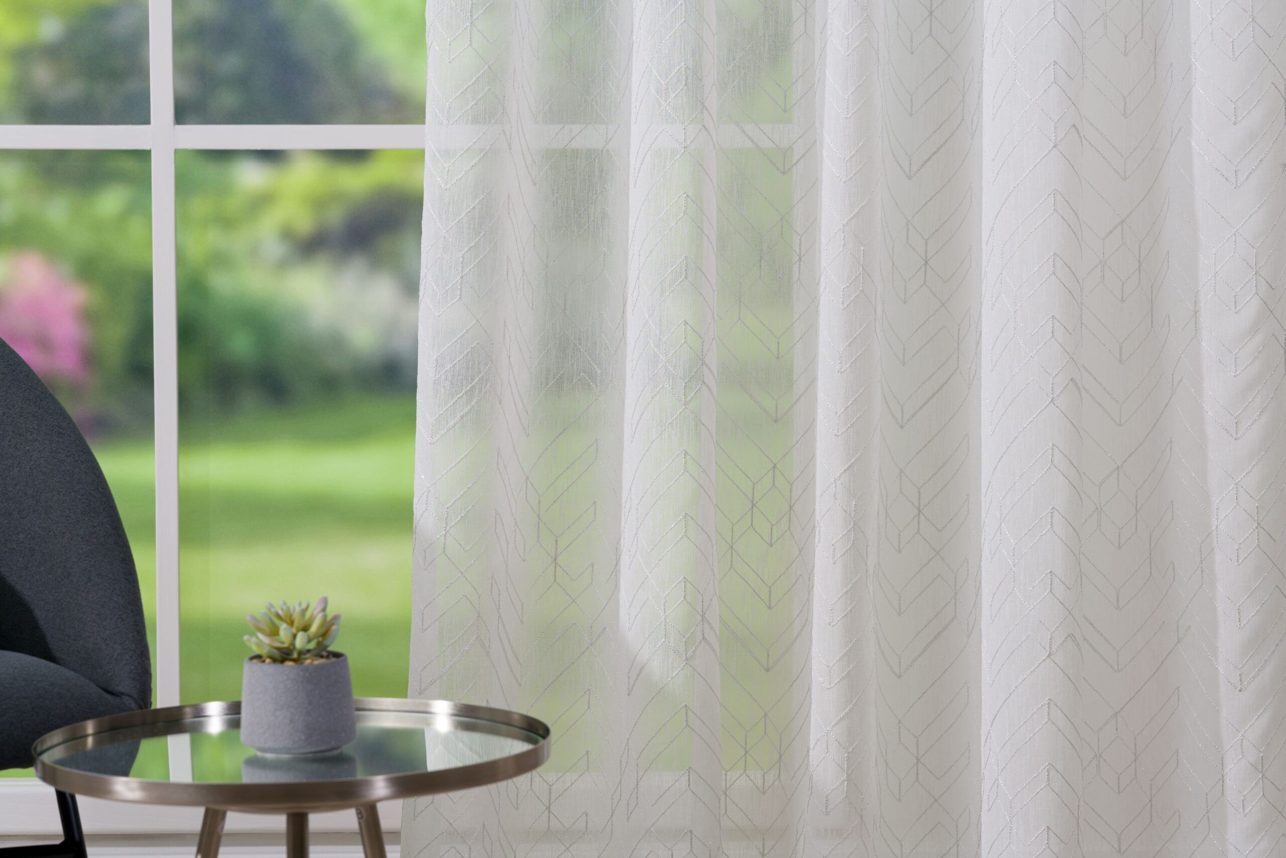 Perdeaua Diamante prezintă un model abstract, din sfera geometrică, brodat pe o țesătură simplă de tip batist. Aspectul ușor strălucitor al perdelei Diamante conferă luminozitate oricărei încăperi.